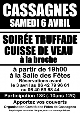 Le comité des fêtes de CASSAGNES organise une soirée truffade le samedi 6 avril 2019.
