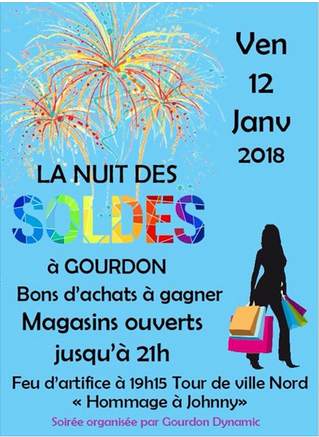 Vendredi 12 janvier, l’association de commerçants Gourdon Dynamic vous invite à une grande «Nuit des soldes», les magasins seront ouverts jusqu’à 21 heures dans la ville de Gourdon.