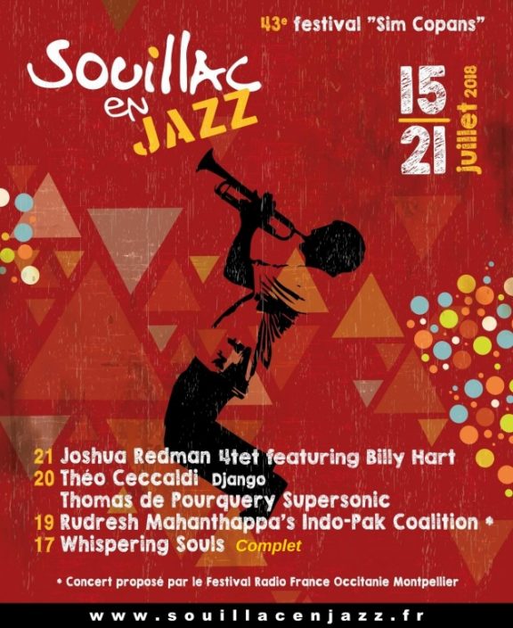 Souillac en jazz du 15 au 21 juillet Publié le jeudi, 12 juillet 2018dimanche, 15 juillet 2018 par jevouslis Cliquez sur l’image: Programme . Animations de rue, stages de danse, repas et concerts gratuits en journée, débats, conférences, expositions, randonnées, ateliers…