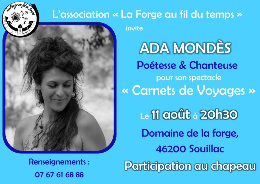 Le 11 août à 20h30, spectacle de la poétesse, comédienne et chanteuse Ada Mondès: