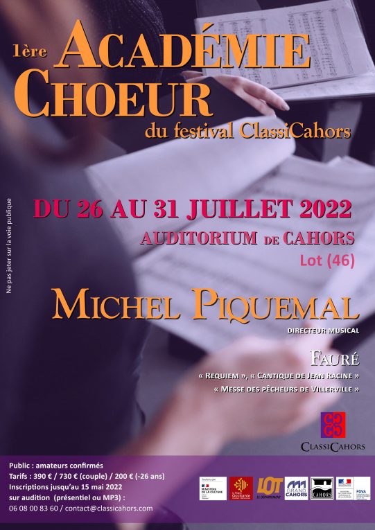 Venez participer à la première Académie Choeur et Orchestre du Festival. Pendant toute la durée du stage, un travail d’interpretation avec le grand chef Michel Piquemal.