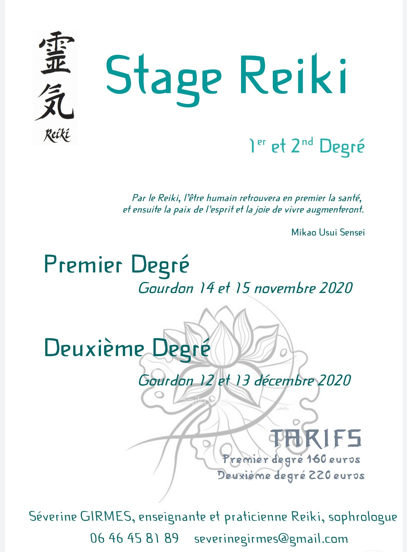 REIKI Deuxième  degré, 12 et 13 décembre 2020