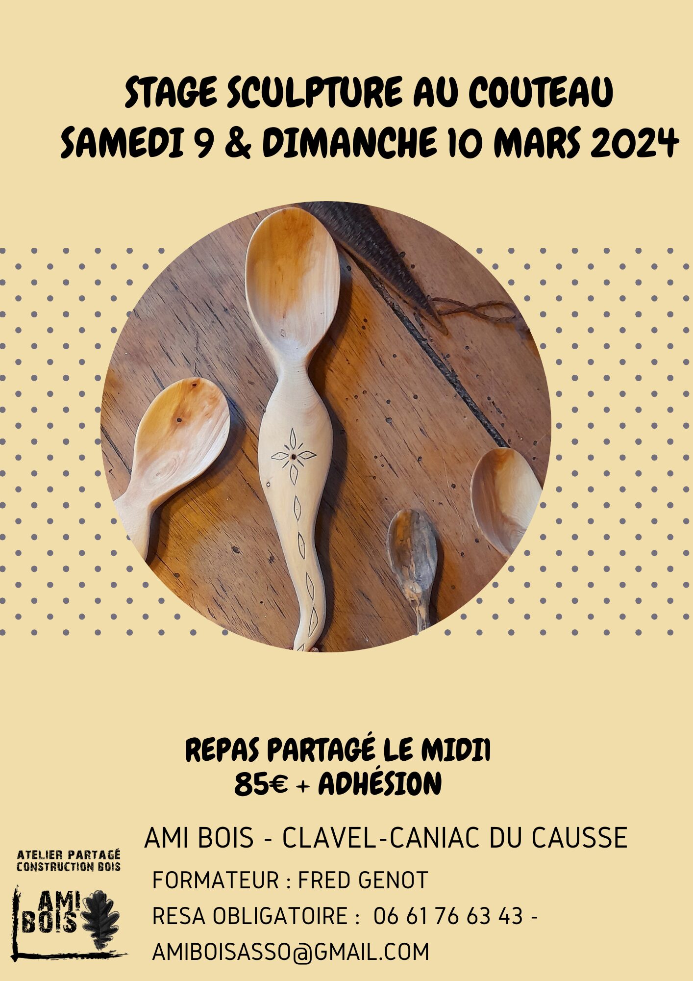 Cette année nous renouvelons le stage de sculpture au couteau avec Fred Genot, qui s’occupe à faire de si jolies cuillères pendant les estives .. mais cette fois au chaud à l’atelier.