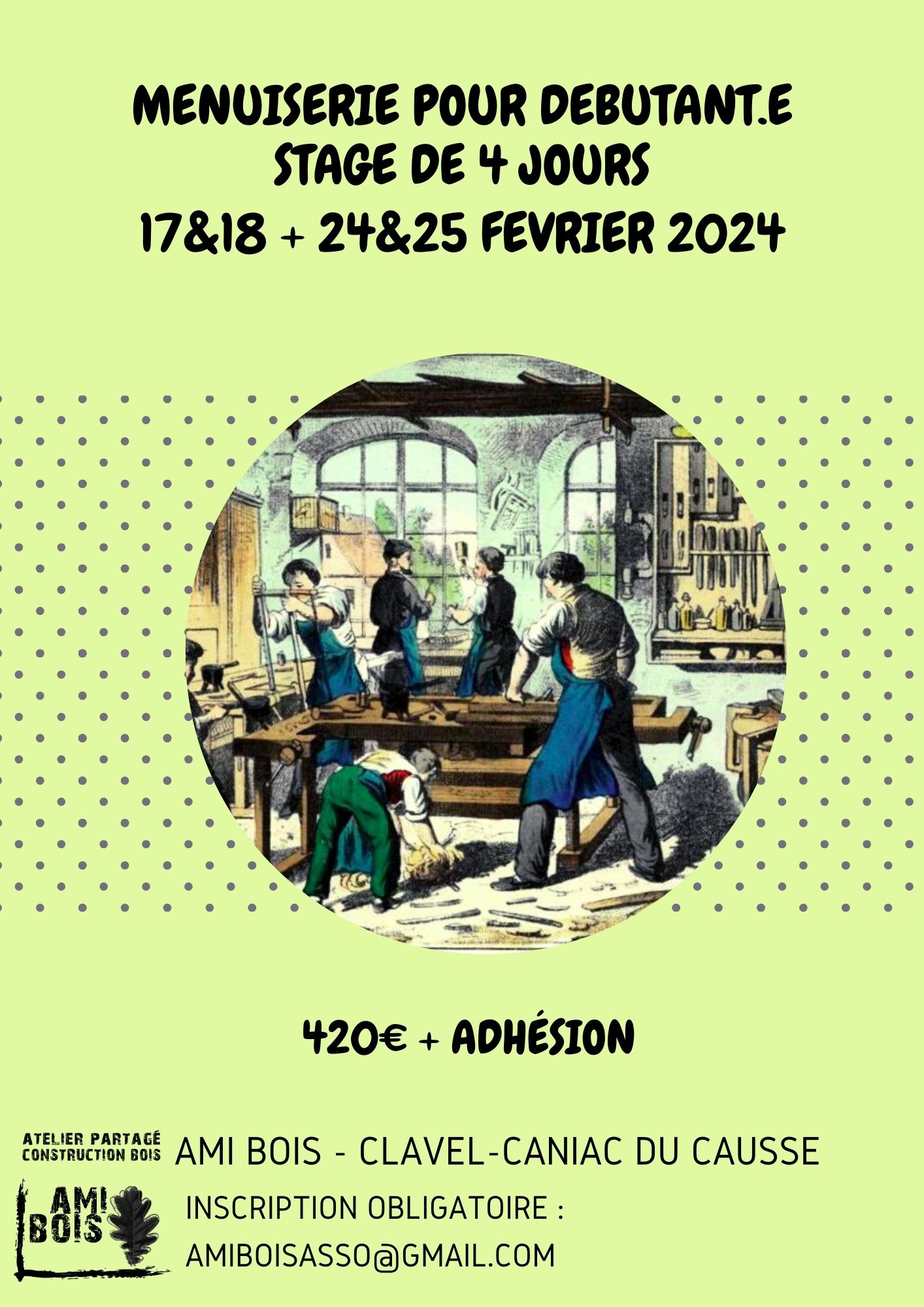 -Menuiserie pour débutant.e sur 2 week-ends: les 17-18 & 24-25 fev 2024