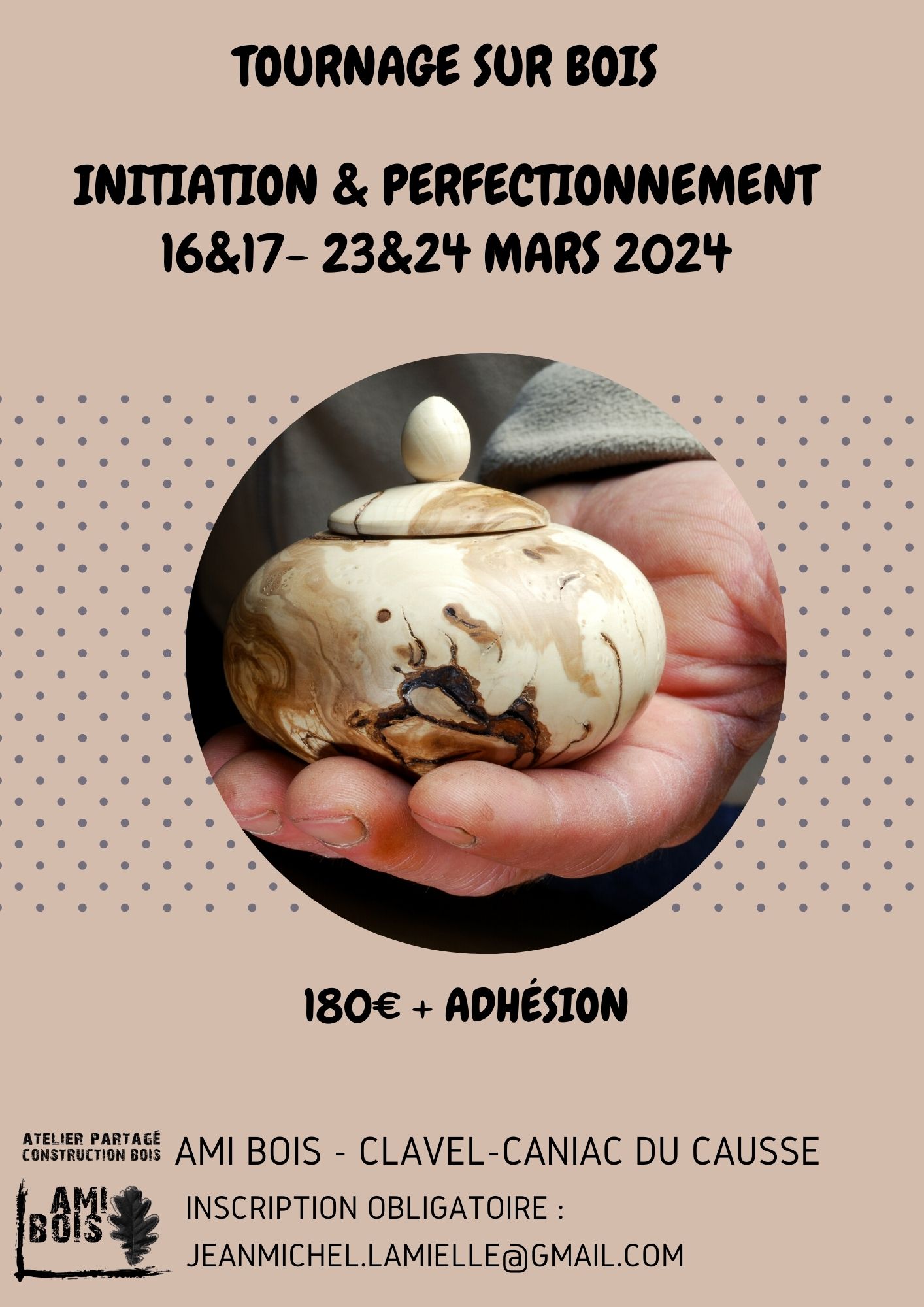 – Tournage sur bois : 16-17 (COMPLET) ou 23-24 mars 2024 / Initiation & Perfectionnement