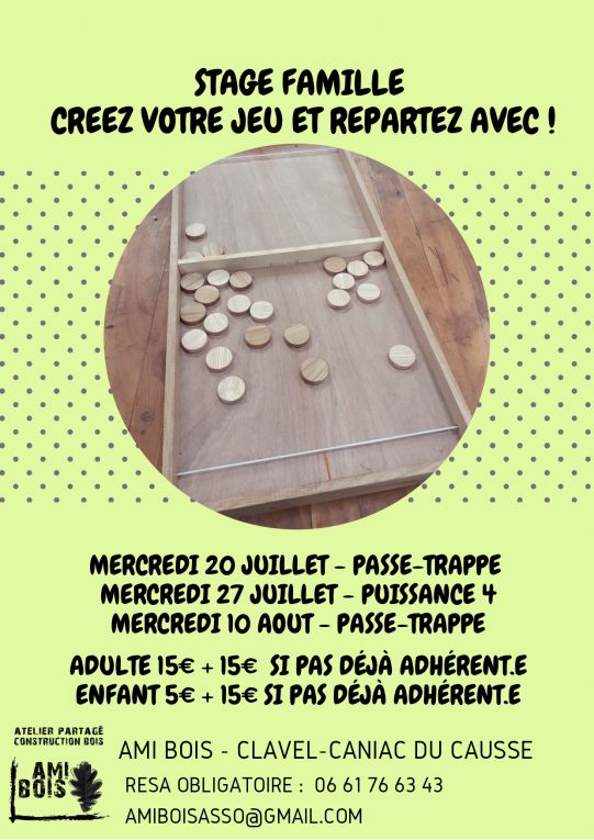 Cet été l’association vous propose de faire connaissance avec le bois et son travail au travers de stages à faire en famille.