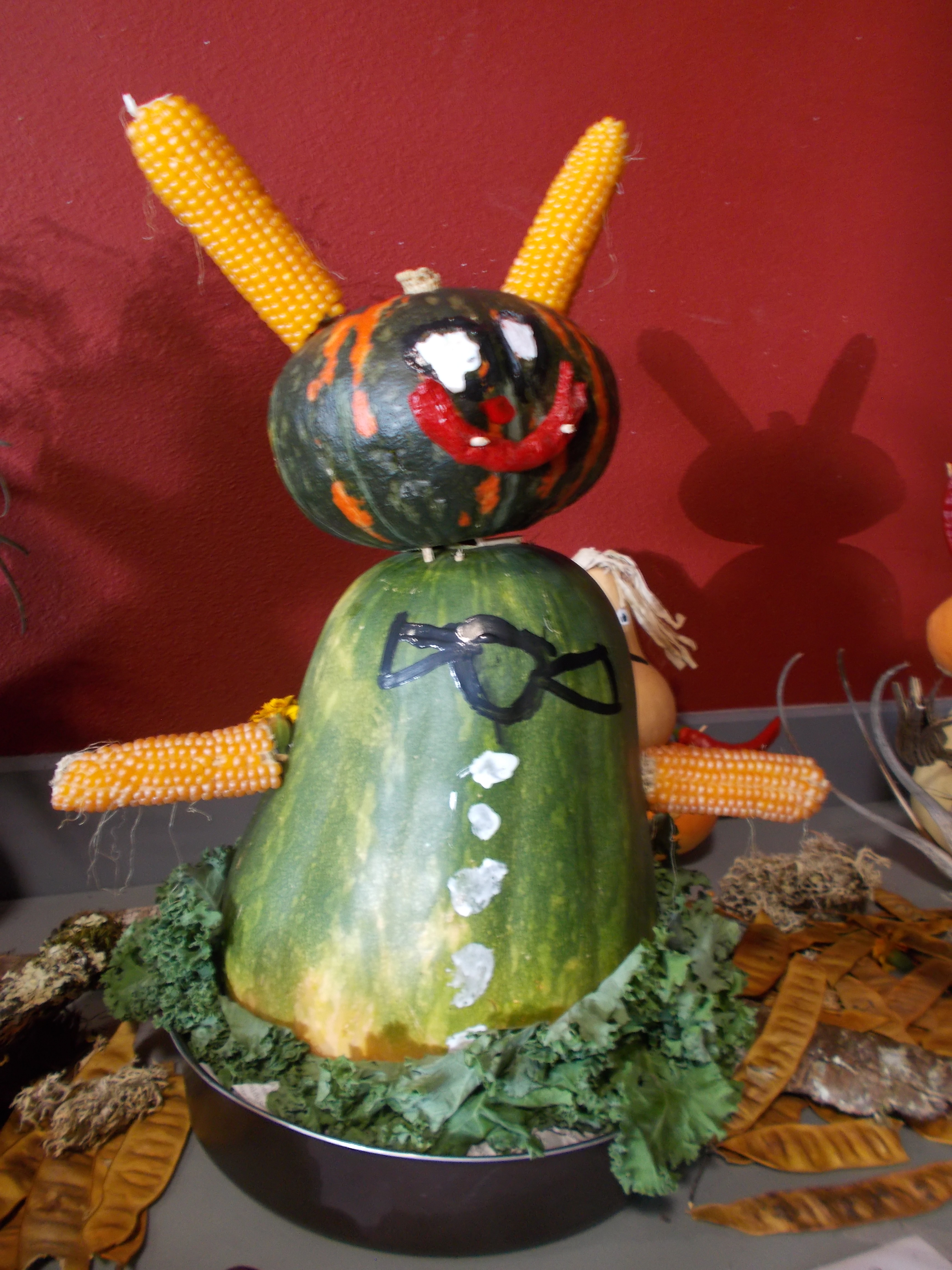 Environ cent cinquante repas ont été servis pour compléter cette dégustation. Et pour clore les festivités certains bénévoles du Jardin Bourian ont dit contes et histoires dans un décor* fantasmagorique de citrouilles de toutes formes parmi lesquelles le géant alangui, Archimbolodo, veillait. La sorcière a eu beaucoup de succès auprès des enfants avec une recette de soupe plutôt bizarre…