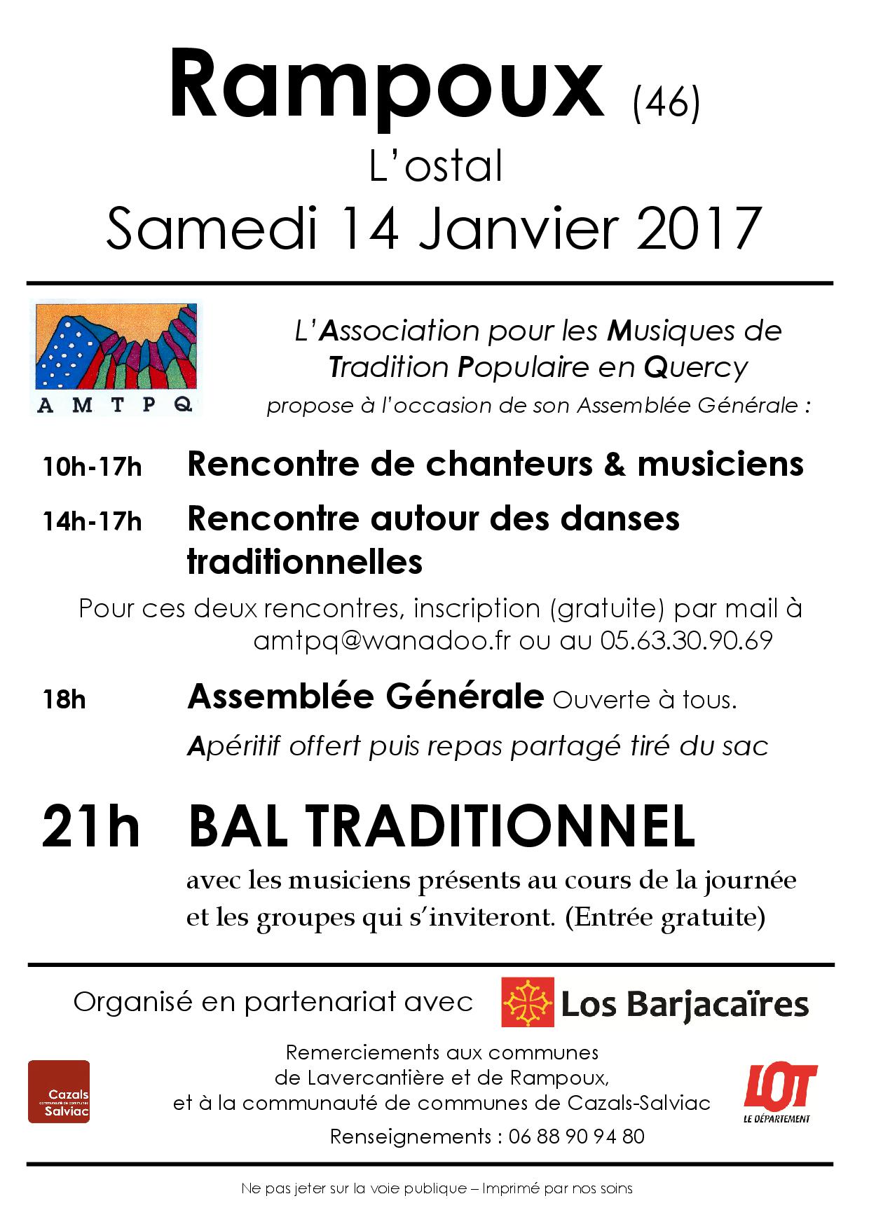 Continuer la lectureRencontre musique, chants, danses, Bal trad à l’occasion de l’AG le samedi 26 janvier 2019 à l’Ostal à Rampoux . Déroulement