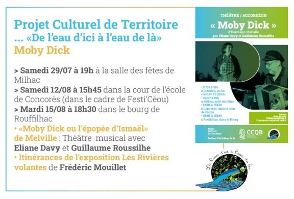 Dans le cadre du projet culturel de territoire De l’Eau d’ici à l’Eau de là, laissez-vous emporter par le récit exaltant et hypnotique « Moby Dick ou l’épopée d’Ismaël », adaptation théâtrale (Eliane Davy) et musicale (Guillaume Roussilhe) du roman épique de Herman Melville :