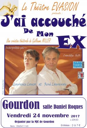 de venir découvrir une comédie de Guillaume MILLER « J’ai accouché de mon ex » jouée par le Théâtre EVASION de Gramat.