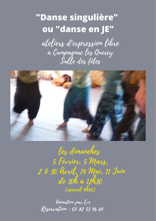 Un atelier de « danse en Je » ou « danse singulière » à Campagnac Les Quercy – dimanche 2 Avril de 10h à 12h30 (accueil 9h45)