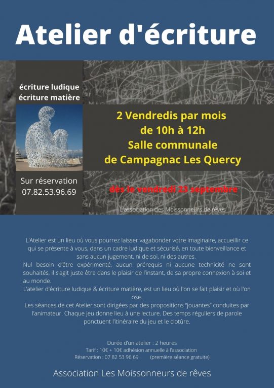 Un atelier d’écriture & matière à Campagnac Les Quercy