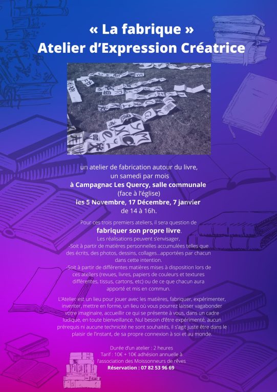 Un atelier d’expression libre, autour du livre : Atelier « La fabrique »