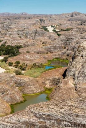Doté d’une richesse biologique exceptionnelle mais victime d’une déforestation totalement incontrôlée, Madagascar fait partie des hotspots (aire géographique représentative de la richesse en biodiversité) de la planète. Isolé du continent africain, Madagascar suscite dans la communauté scientifique de nombreuses interrogations, particulièrement sur l’origine d’une partie de sa biodiversité actuelle. Dans le Makay, nous explique Gaëtan Deltour, « la déforestation avec les feux de forêt primaires est la principale menace sur la biodiversité aquatique, la pollution étant à ce jour inexistante ». Les sols des surfaces déforestées sont d’abord lessivés par les eaux de pluie, avant d’être soumis à une érosion non contrôlée. Les sédiments sont alors transportés par les cours d’eau en direction de la mer, et une bonne partie se dépose au fond de l’eau. Cette sédimentation a la fâcheuse conséquence d’amener au comblement progressif des lacs et des zones marécageuses, ainsi qu’à la réduction de la superficie des plans d’eau.