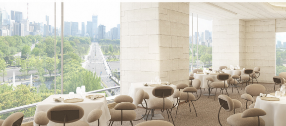 Il est situé au 6e étage de l’hôtel. Les baies vitrées donnent vue sur le Palais et le Jardin Impérial. L’ouverture est prévue le 1er novembre avec un dîner de presse officiel.