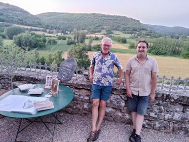 Pierrick Houbart et Vincent Drouin sur la terrasse du château au bord du Lot