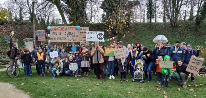 à l’appel de l’association citoyenne La Fabrique, pour sonner l’alarme du climat. Une déambulation très colorée, délibérément cacophonique et joyeuse dans les rues du village, ponctuée par une tonitruante alarme à 16 h, à l’unisson des centaines d’autres marches organisées le même jour dans le monde entier. Ce fut un très beau moment de partage sur la Place du Communal. Une petite délégation a ensuite été reçue en mairie pour transmettre les doléances des participants.