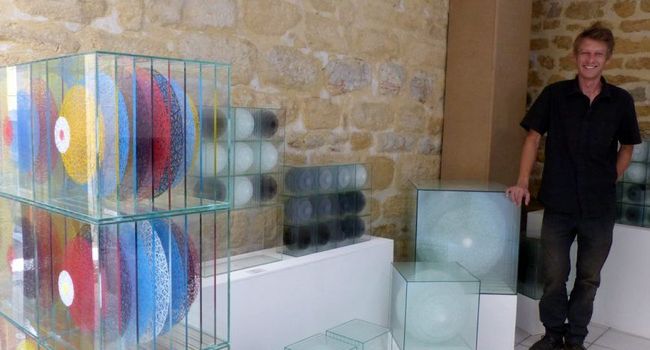 Sébastien Crêteur est artiste plasticien. Il vient de s’installer à Gourdon pour ouvrir sa petite galerie et son atelier, 26 rue du Majou. Créateur de peinture sculpturale, il fait naître des structures à la frontière de la peinture et de la sculpture. «Je suis sur une démarche de peintre. Je suis arrivé au volume, car je cherchais une profondeur, explique Sébastien qui réalise ses peintures sur plaque de verre avec des impacts de lame de rasoir. J’essaye de retranscrire des bribes d’énergie ; chaque sphère compte le même nombre d’impacts.» Passionné d’astronomie, il provoque une forme d’attraction hypnotique de la forme et de la couleur, pour mettre le spectateur en orbite. L’artiste va s’installer à l’année rue du Majou. Il expose également à Toulouse, Lille et Saint-Tropez (www.sebastiencreteur.com).