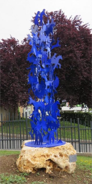 Installée à l’entrée de la Résidence autonomie des Pins, avenue Maryse-Bastié à Cahors, le totem « Le Fer bleu » a été réalisé en collaboration avec les résidents. « Ils ont choisi douze pictogrammes du code de la route, sur les thèmes de la ferme, des animaux, des travailleurs. Ils ont aussi choisi la couleur. En haut de la sculpture, j’ai tenu à mettre le mot « Rappel », pour qu’on se rappelle de nos anciens. J’ai un immense respect et une grande tendresse pour nos anciens. Je vais régulièrement dans les EHPAD pour présenter mon travail et rencontrer les gens » a expliqué Fernando Costa.