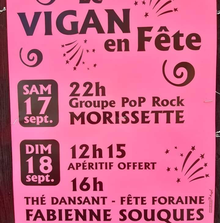 Le week-end prochain dans notre commune la fête revient, tradition ancestrale de la vie de nos commune qui a depuis des années rapproché des personnes qui ne se voyaient que dans ces moments-là, des couples se sont formés, des amitiés sont nées, des souvenirs aussi. Dans la vie d’une commune la fête est un moment de partage et de plaisir de se retrouver autour d’une même idée « la convivialité » ainsi va la vie d’une commune et bien qu’avec le temps les traditions s’estompe nous nous devons de les faire vivre. C’est ainsi que dans notre commune du Vigan, nous vous attendons nombreux pour participer à cette tradition. Le dimanche à 11h30 dépôt de gerbe au monument aux morts suivit, comme la tradition le veut, d’un apéritif offert par la mairie.