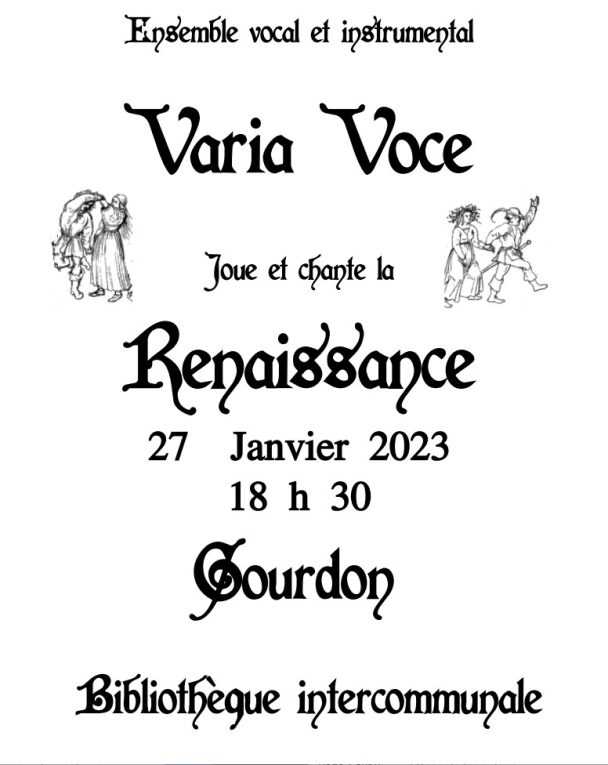 Le groupe vocal et instrumental Choeur de femmes « Varia Voce » vous fera découvrir son répertoire de chants de la Renaissance, accompagnés par deux guitares: