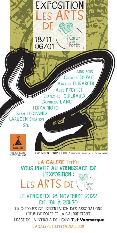 L’association Coeur de Forêt et la Gallerie TeePee vous invite au vernissage de l’exposition « Les arts de Coeur de Forêt » au 38 Rue Haute, 46 340 Salviac, ce vendredi (18 novembre 2022), à partir de 18h30 et jusque 20h30.