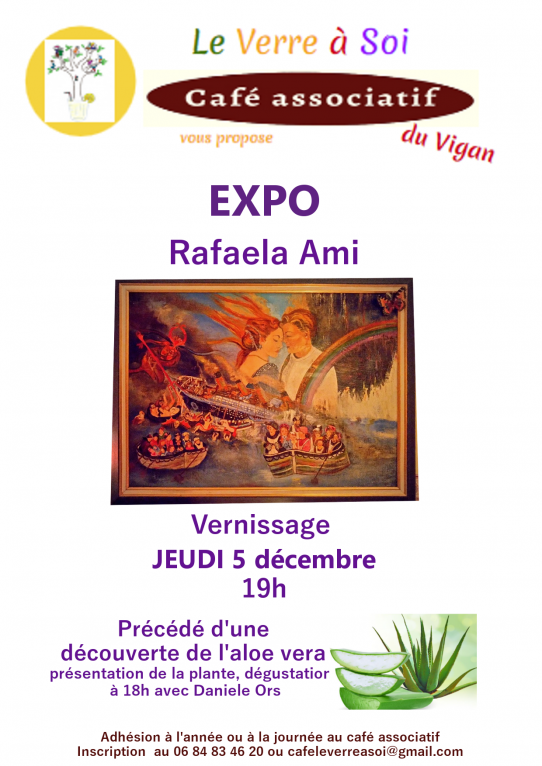 Au café Le Verre à Soi au Vigan une nouvelle sélection de tableaux s’exposent pendant un mois, Rafaela Ami, habitante de Payrac, vous invite à son vernissage qui aura lieu le jeudi 5 décembre à 19h.