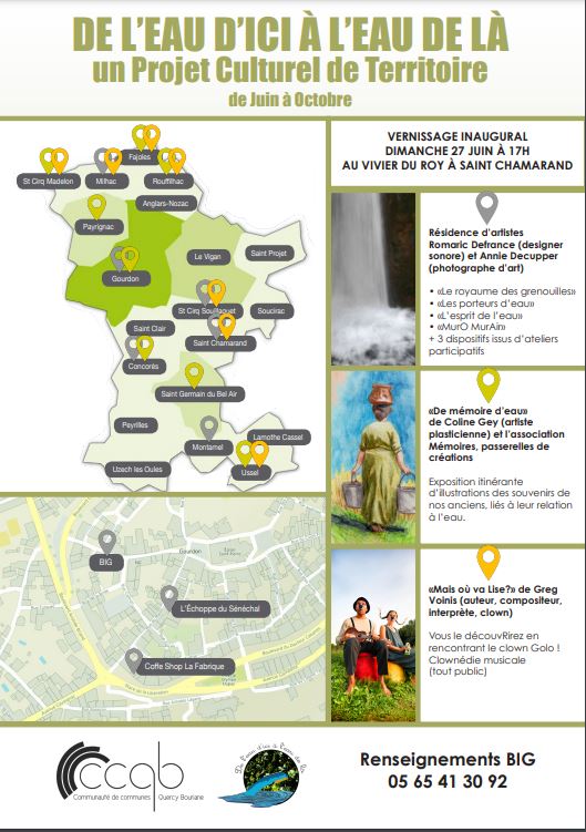 Vous êtes invités à parcourir le territoire de Quercy Bouriane et ses jolis petits villages pour découvrir les 3 projets qui constituent « De l’Eau d’ici à l’Eau de là », événement culturel de territoire dans sa première version.