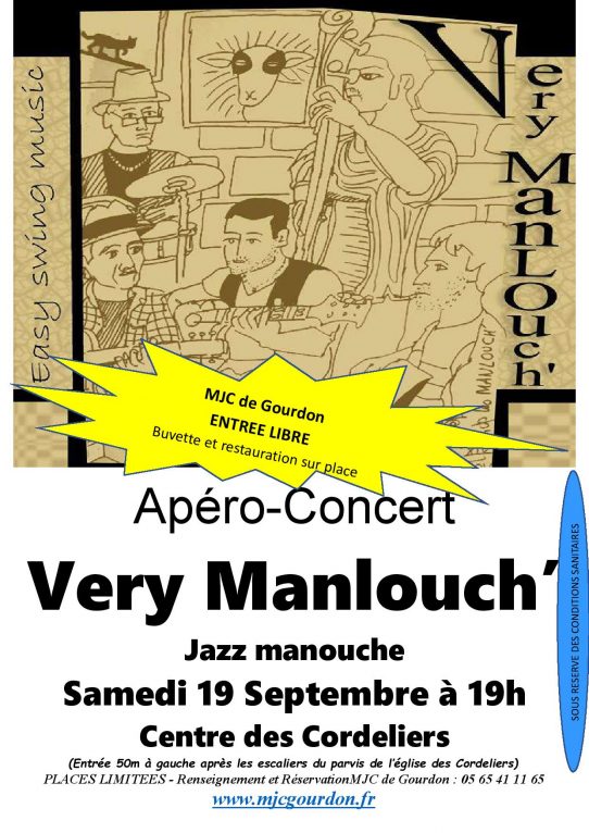 Pour la Journée Portes Ouvertes de la MJC ce samedi 19 septembre aux Centre des Cordeliers, la soirée se terminera en beauté avec un apéro’concert des Very Manlouch (Jazz Manouch) et un One Man Show avec Sofiane.
