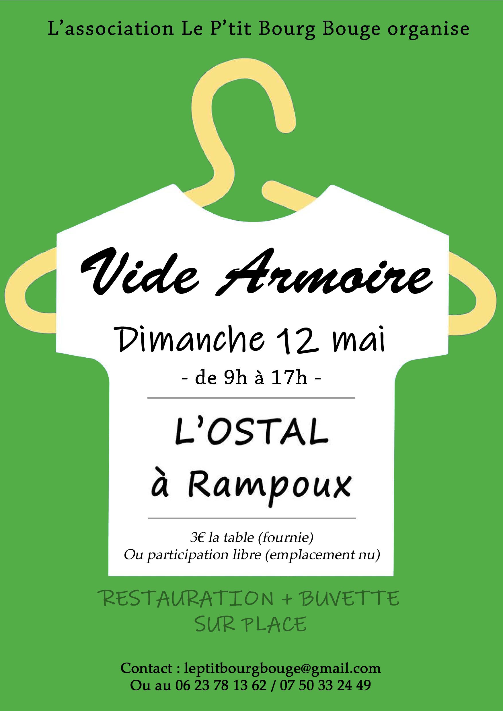 L’association « Le P’tit Bourg Bouge » organise un vide-armoire à l’Ostal à Rampoux.