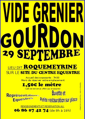 Le Centre Equestre de Gourdon, lieu dit Roquemeyrine, près des Grottes de Cougnac, organise son Vide Grenier annuel, tout exposant confondu, meubles, bibelots, vêtements, matériels divers équestres ou non..Une cinquantaine d’exposants vous attendent!!
