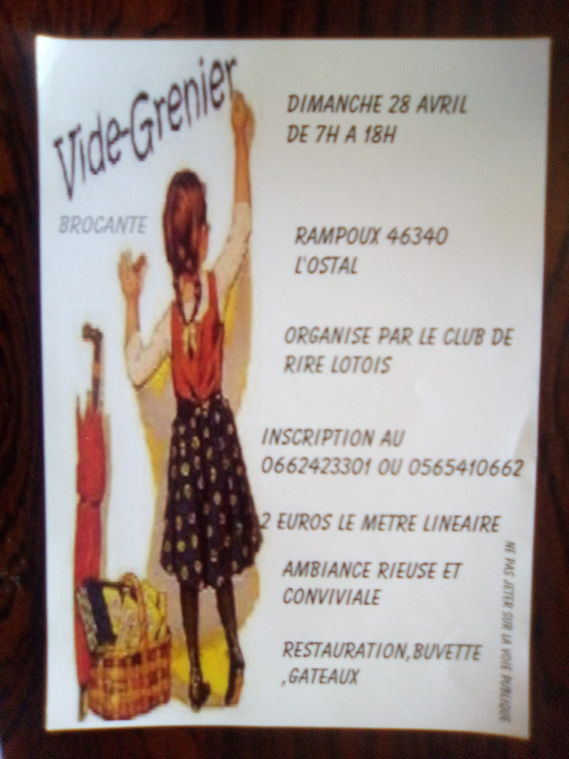vide-greniers brocante de l’ostal à rampoux Publié le jeudi, 25 avril 2019vendredi, 26 avril 2019 par vartegan . .