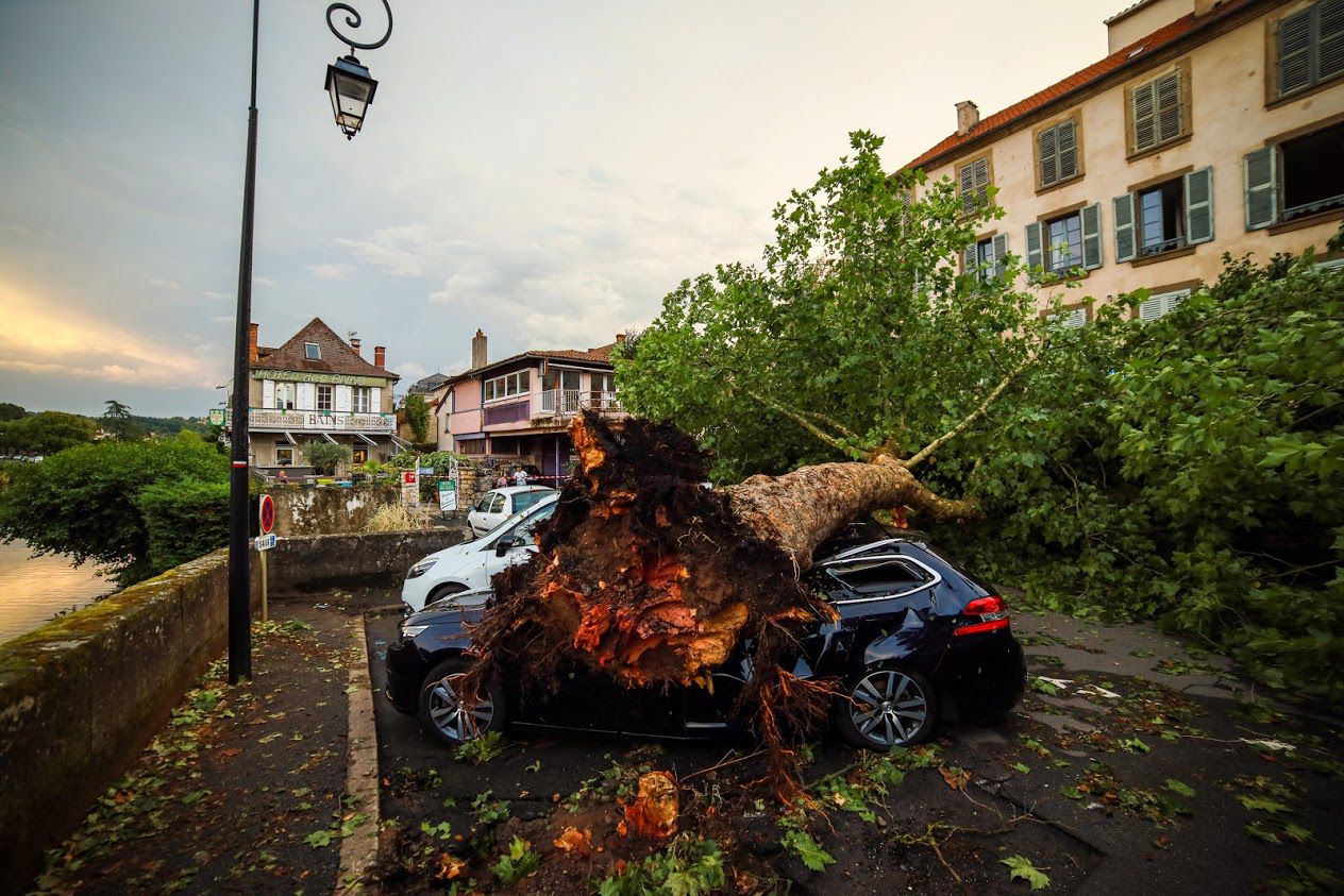 Alain Bayol responsable de Figeac Bike au bord du Célé raconte : « En 30 secondes c’est devenu une tornade avec des trombes d’eau, du vent, on ne voyait pas à 3 mètres, un véritable mur d’eau, ça a duré 15 minutes, c’était très intense et impressionnant, les vitres du magasin tremblaient, on entendait des chocs, quand le calme est revenu j’ai constaté les dégâts avec les platanes couchés sur les voitures, j’étais très impressionné. »