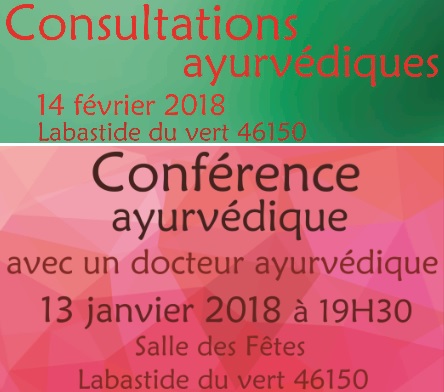 * une conférence sur l’Ayurvéda : le Samedi 13 janvier 2017 à 19h30 à la Salle des Fêtes de Labastide du Vert 46150